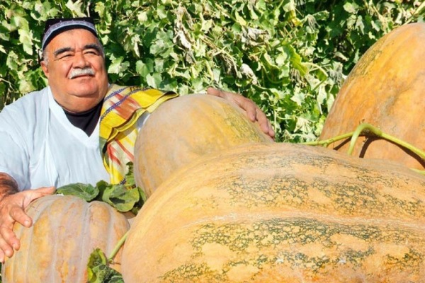 Özbək seleksiyaçısı və fermeri Alinazar İmamnazarov çəkisi 40-45 kiloqramlıq balqabaq yetişdirib.